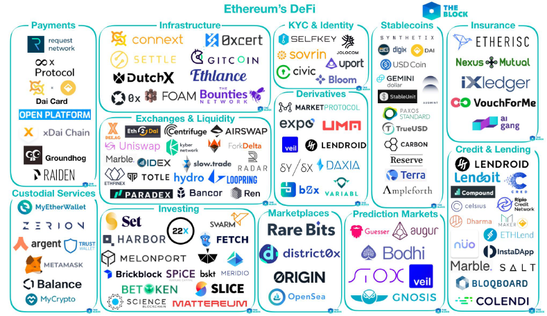 DeFi initially called Open Finance pretends to create a new digital financial system, who can be used by any person in the world just with an internet connection, one of the goals of DeFi is to replicate all the traditional financial services that we know, but without the need of a company or centralized institution, at the same time, DeFi pretends to create new financial services, more novel and complex, DeFi refers to new financial tools that are manage thanks to decentralized code develop in a public blockchain. Some experts claim that the only and first DeFi was Bitcoin, thanks to characteristics like independence and freedom in the transmission of value, on contrary, others think that the creation of a new financial system it is not possible to develop only with the bitcoin token, a modern society requires different types of decentralized services like credits, lending and borrowing, insurance, payment networks, stables assets, financial derivatives and many other services. In 2014 Bitcoin inspired the creation of Ethereum, a public blockchain that allows the development of decentralized applications, some of them DeFi projects. Evolution: DAI a stablecoin collateralized initially with Ether, was one of the first DeFi projects, later in 2017 the ICO phenomenon took place, a big part of the ICOs launched were frauds or failed projects, however, some ICOs achieved to finance some DeFi platforms that were the basis of the ecosystem. The main characteristics of DeFi are; pseudo anonymity, transparency, permissionless and non-custodial of asset by any third party. DeFi works thanks to smart contracts that are programs develop in a blockchain, DeFi in Ethereum represents different layers of innovation that permit the construction and interaction with decentralized finance. Ethereum has its own native token, better known as Ether, at the same time Ethereum allows the creation of other token standards like fungible tokens, non-fungible tokens, and many others. When we think about Ethereum and DeFi, the first topic that comes to our mind are decentralized exchanges DEXs and lending platforms, these DeFi services are the most common at this stage, but there are many others categories and tools who help these technologies.